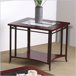 Riverside Furniture - End Tables - 2709 - The Arkansas River Valley is home of majestic forests, ruggedly beautiful mountains, gurgling brooks and swiftly flowing rivers. It is also the home of Riverside Furniture Corporation. But like they would with any old friend, most folks refer to us just by our first name. Riverside has been growing with America for more than half a century Now and since then, Riverside has been a name three generations of Americans who have furnished their homes and offices with our wide range of furniture products. We want the Riverside name to be trusted for quality products that are an affordable value. It's just that simple.Constructed of Mozambique veneer, engineered wood, with metal legs and frameTop with a beveled-edge, tempered glass insertBase levelersFixed bottom shelfDimensions: 24 inches H x 23 inches W x 27 inches DHeight: 35 inches