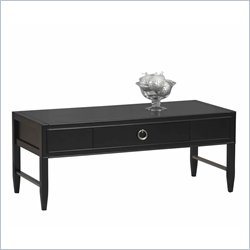 Linon - Espresso Tables - 77504BLK01KDU - Black and Chrome finishNickel coloured accents and hardwareOne drawer with metal glidesLarge and spacious table top rated surfaceMaterial: Birch solids, veneers, and MDFUnique designSome Assembly RequiredSpecifications:Total Dimensions: 47.5W x 20D x 19HWeight: 53.57 lbs