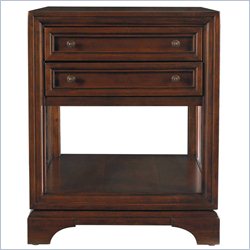 Stanley Furniture - End Tables - 8161509 - The Continuum Collection brings modern undercurrent sophisticated style. With lightly curled feet and solid, clean panel carved lines the over all effect is stunningly transitional. This piece is also highly versatile with a open storage area for books or display and two drawers to store your belongings and declutter your resting space. Finished in Amaretto Cherry Antique brass knobs Two drawers to store away your night time accessories Open shelf for books or display pieces Constructed of Cherry and select hardwood solids & cherry veneers Specifications: Dimensions: 23W x 28D x 28H Weight: 121 lbs