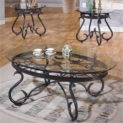 Steve Silver Company - Coffee Table Sets - LL400X - Merge style, design and fashion together and you will have the Lola glass top table collection. The Lola Features scroll metal legs with a lot of detail. This set includes the Lola Coffee table with two end tables. Dark Brown finish with Gold highlights Contemporary style Includes coffee table and 2 end tables 8mm thick beveled glass top Scroll metal legs Specifications: Overall coffee table dimensions: 18H x 32W x 48D inches Overall end table dimensions: 22H x 26W x 26D inches Weight: 136.5 lbs